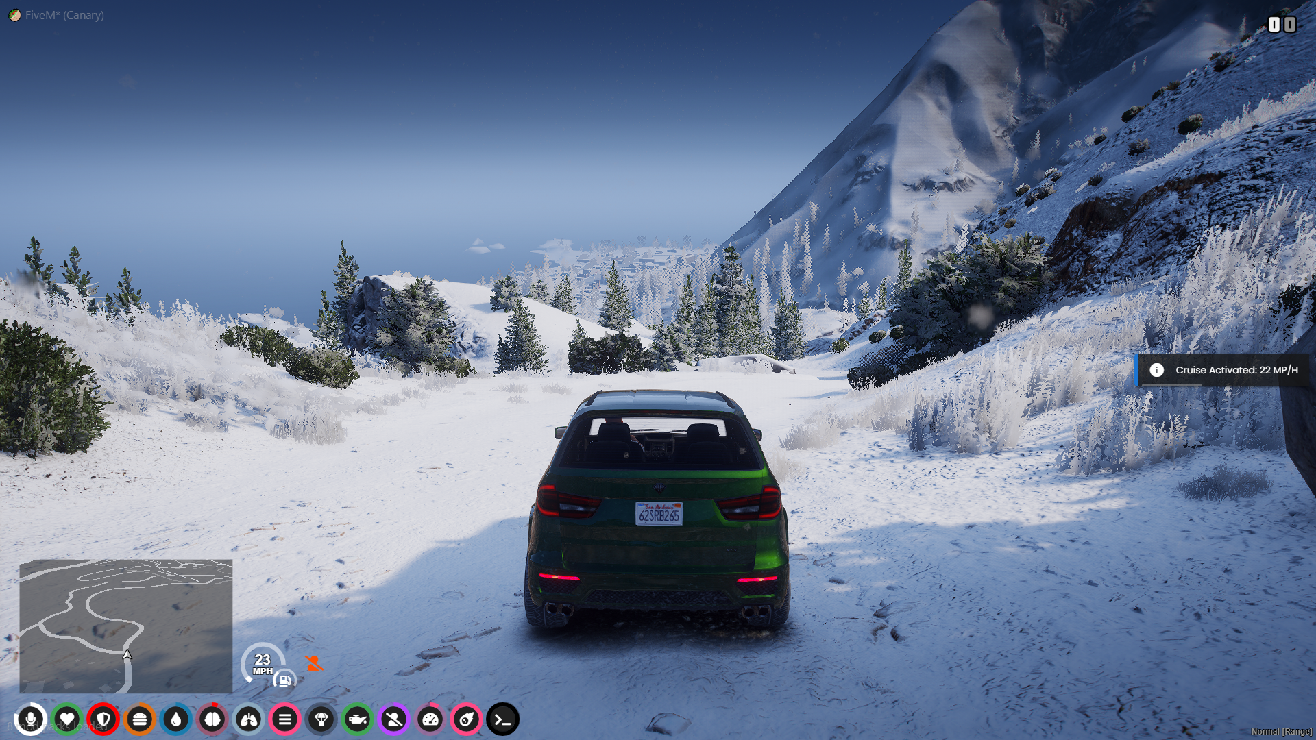 That is your harness indicator! When you have the item "harness" in your inventory and while in a vehicle it will appear. Also, when you use your item "harness", the circle/radial will reflect the amount of uses left and decrease over time.